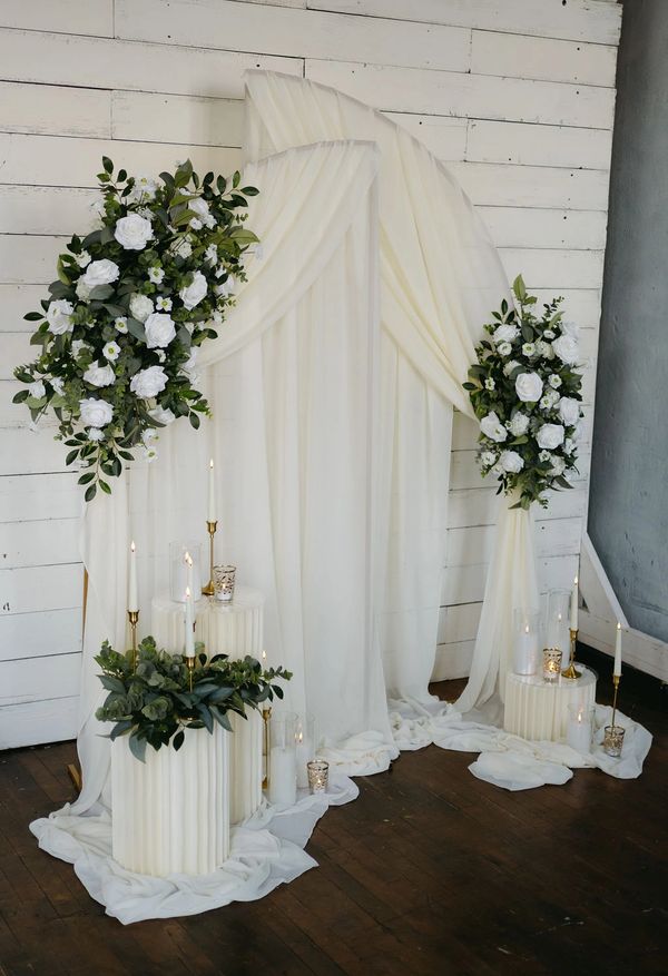 Add a round tablescape package to display on the floor for even more drama.