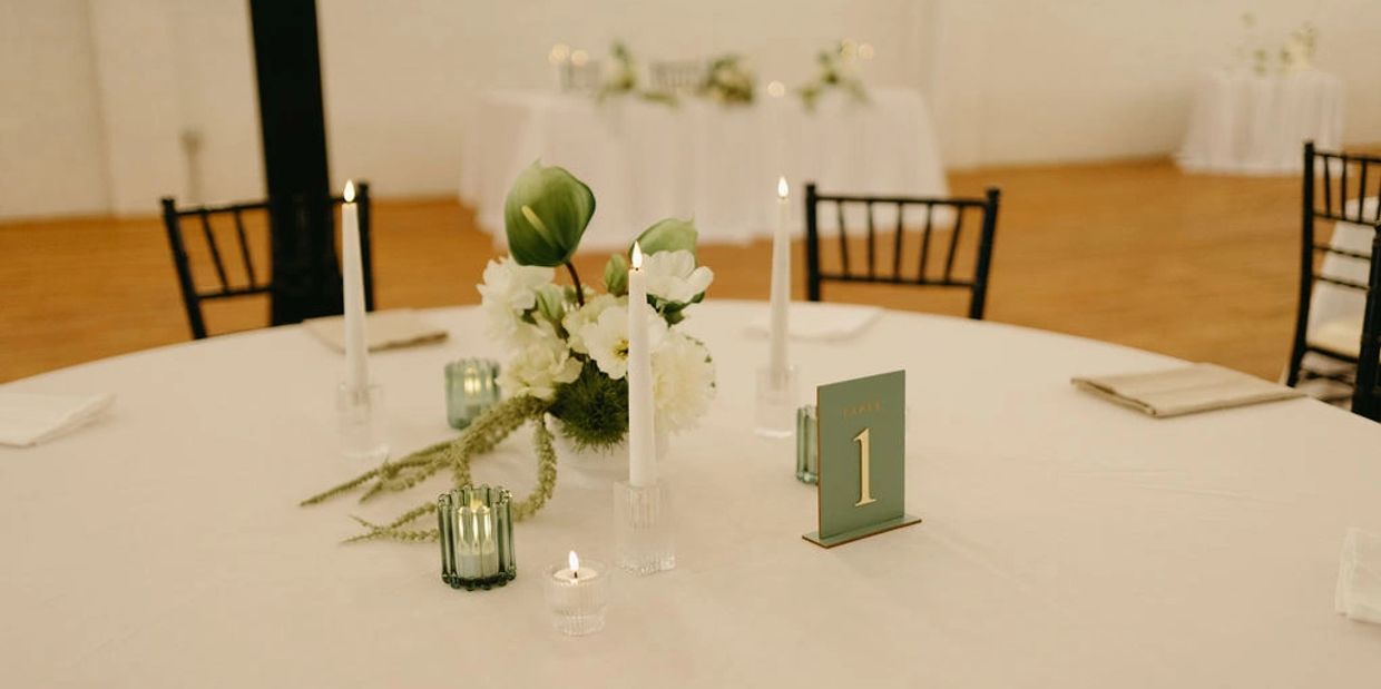 A table decor collection designed for couples who love elevated simplicity with organic elegance. Featuring lush green and white faux florals, glowing candlelight, and delicate glass textures. This collection embraces a palette that symbolizes renewal, sophistication, and natural beauty.
